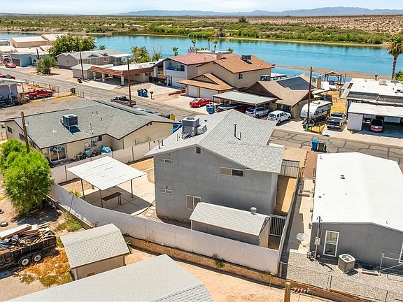 Step into comfort and style with this charming two-story site-built home perfectly situated across from the Colorado River! Designed with a reverse living floorplan, the main living space is located upstairs to take full advantage of the gorgeous river, mountain views, and Arizona sunsets. Fresh new carpet and paint give the home a clean, modern feel, ready for you to move right in. Enjoy an open-concept layout with tons of natural light, ideal for entertaining or relaxing while soaking in the scenery. The lower level offers spacious bedrooms and easy access to the oversized lot with plenty of parking for boats, toys, and guests. Located just minutes from the Vegas style gaming town of Laughlin, NV, blocks to the public boat launch, minutes to all the desert off road trails, you'll have quick access to casinos, dining, shopping, SXS trails, and all the fun the river lifestyle offers. Whether you're looking for a full-time home, weekend getaway, or investment, this property checks all the boxes!