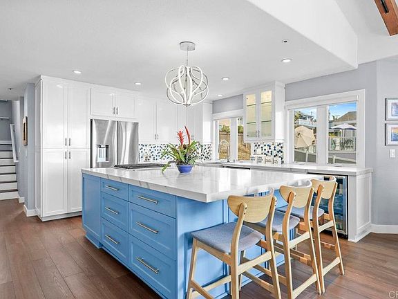 Welcome to coastal luxury in the heart of Cardiff! This stunning home offers 2,200 square feet of beautifully upgraded living space with panoramic ocean views from two levels, extending all the way to La Jolla. Just four blocks from Cardiff’s pristine beaches, local shops, and vibrant dining scene, this home lets you experience the best of coastal living. Designed with an open-concept floor plan, this home features high-end finishes throughout, a large kitchen island, and soaring vaulted ceilings that amplify the natural light and ocean breeze. Expansive frameless folding patio doors blend indoor and outdoor living seamlessly, leading to two spacious decks and a private patio, ideal for entertaining or relaxing. The layout is versatile, with a bedroom and bath on each level and an additional office/den on the bottom floor that could be converted into a private rental or separate living space. The top-floor primary suite is a sanctuary, offering a walk-in closet and a grand spa-like bathroom. Practical and smart, the home includes an inside laundry room, a two-car garage, additional off-street parking via the driveway and alley access, and a convenient EV charging station. With smart-home features like a thermostat, camera security system, keyless entry, and the EV charger, modern convenience is built in. Living in Cardiff means more than a beautiful home—it’s a lifestyle. With scenic coastal trails, renowned surf spots, and a friendly, community-oriented atmosphere, Cardiff offers a unique blend of relaxed beach town vibes and upscale amenities. Discover the ultimate Southern California lifestyle in this exceptional home in Cardiff-by-the-Sea!