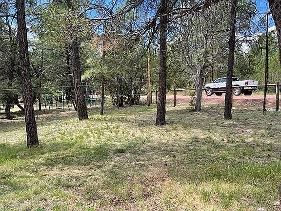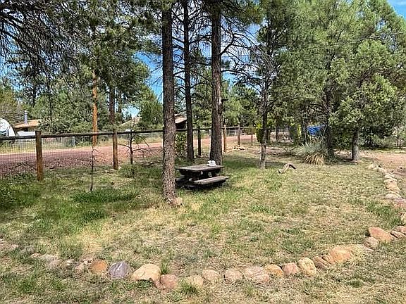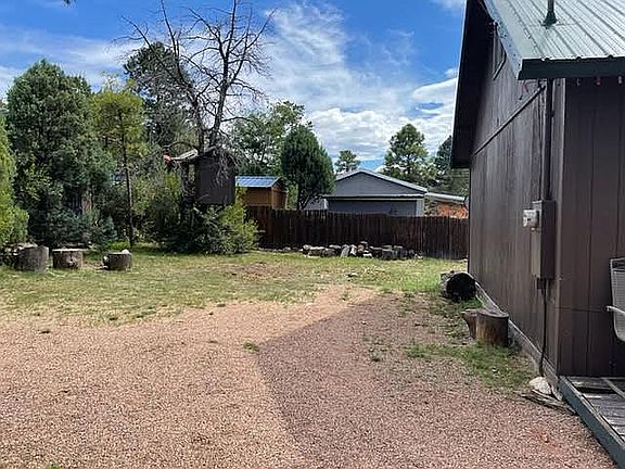 Welcoming cabin on a nicely treed .33 acre lot. Completely fenced with two gates and a wrap around drive way. Two bedrooms downstairs with a full bath including shower/tub combo. Kitchen with all appliances included. all other furnishings included to step right in and enjoy. Internet is secured. Wood stove with an additional propane heater. Flooring is laminate and upstairs berber carpet, cabin has shutters and blackout shade in bedrooms, Metal roof and wrap around deck. Upstairs two separate room loft. Come enjoy the beautiful night sky . Property priced (reduced) according to deferred maintenance of the wrap around deck. Shown by appointment only.