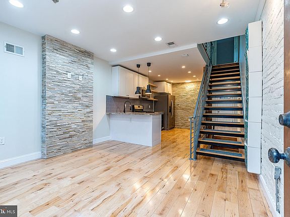 Located in Philadelphia’s Point Breeze neighborhood, this updated 2 bedroom, 1.5 bath townhome offers efficient space and modern finishes. The main level features an exposed brick accent wall and an open living and kitchen area with stainless steel appliances, drink fridge, and stacked washer/dryer. A half bath sits at the rear of the home. Step outside to a fully fenced backyard with new deck flooring, awning cover, grill, and storage area, creating a private outdoor retreat. Upstairs, both bedrooms connect to a brand new full bathroom with soaking tub, walk-in shower, and new vanity. The finished basement provides flexible space for office, gym, or media use, plus a utility area with furnace and water heater. Enjoy easy access to public transit via the Broad Street Line, neighborhood parks, and nearby dining options including Hardena and Two Eagles Café.