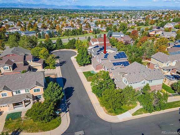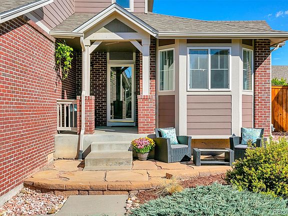 Stylish, updated, light, bright 4-bedroom Conservatory 2-story with 3-car garage and solar panels on a quiet cul-de-sac. This home has a gorgeous open floor plan, main floor primary suite, vaulted ceilings & loft space with mountain views. Freshly painted interior with updated kitchen + bathrooms has a chic, grey/white color palette. Big main-floor primary bedroom includes feature wall with decorative *coffered* carpentry, new lighting & a beetle-kill pine barn door. 5-pc ensuite bath has double sinks, smart mirror, soaking tub, shower, separate WC, walk-in closet. Main floor kitchen/living areas have dark, wide-plank luxury vinyl flooring, a formal dining room with bay window, guest powder room & soaring ceilings in the main kitchen/living space. Kitchen includes stainless appliances, pantry & gorgeous waterfall granite countertops that integrate into kitchen table with barstool seating. Wall-to-wall kitchen cabinets provide copious storage & counter-space. Chic black accents on the kitchen island & charcoal hex-backsplash carry into the dramatic stone living room fireplace feature wall & the black staircase that leads to a cozy upstairs loft. Curl up with a glass of wine & a book and watch a dramatic sunset. 3 more bedrooms upstairs with another full bathroom means lots more space for sleeping, guests or WFH offices. Basement is only 1/2 underground, bringing natural light inside. Basement also has crawl space for storage, window wells for egress, perimeter drain, sump pumps + roughed in plumbing -- a blank canvas to customize! Three outdoor patios include a flagstone patio in the front yard, a covered front porch & a back patio off the kitchen with space for the grill, providing all-season spaces for coveted Colorado outdoor living. Lots of grass space out back for playing. SunRun solar lease keeps energy costs low. Easy E-470 access. Great location with pocket parks, trails, shopping, retail. Walk through the home virtually with Video & 3D tours.