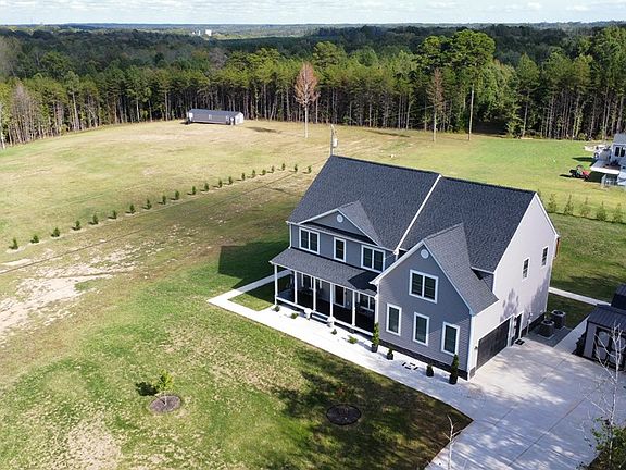 AMAZING NEWER SECLUDED CUSTOM SPEC HOME with tons of desirable features! 5br's, 2-car garage w/epoxy floors, paved dway. Inside= 9ft tall ceilings, open floorplan, updated kitchen w/full cabinets & granite, designated dining room w/trey ceiling, ENORMOUS 17ft ceilings in LR w/built-ins & deco FP, main level master BR + master suite upstairs w/trey ceiling, ensuite updated bathroom & w/in closets, +3 more SPACIOUS BRs upst (w/walk-in closets) & upst laundry rm, +balcony office! All upst BRs have pretty & peaceful views. Outside, a roomy covered front porch, stamped concrete lanai w/firepit & gazebo (both convey!) & 2 spacious outbuildings w/loft & tons of storage. All this on 2 level cleared acres, planted border/privacy trees, & 2nd private dway, beautiful views! Dual AC, city sewer