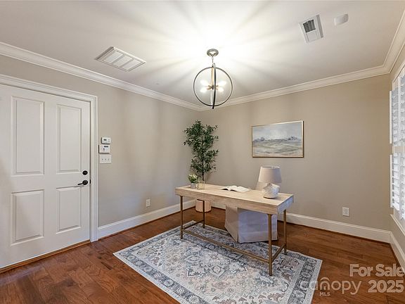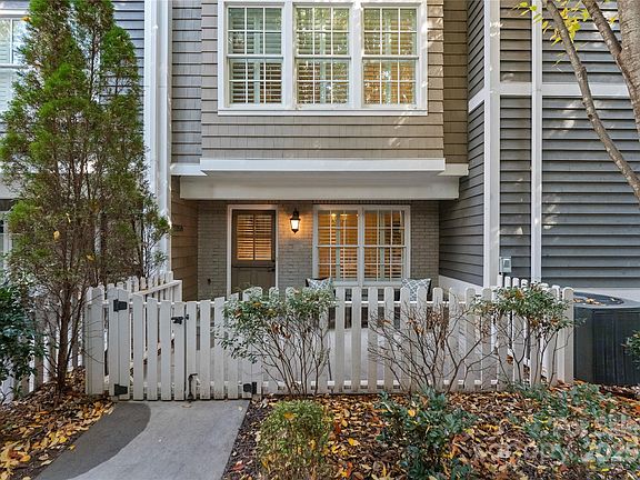 Rare traditional Townhome in the heart of historic Dilworth. Private side street off Euclid with mature landscape and exterior southern charm. Walkway to gated front porch and welcoming entry to home. Office /flex space with hardwood floors and garage entry. Head up to the main level with hardwood floors, bright windows with custom shutters, spacious Great room, spacious Kitchen with granite counters and large eat in island. Half bath on main. Upper level with spacious Primary suite, walk in closet and primary bath with oversized shower and dual vanity. Second bedroom with en suite bath. Laundry closet with washer/ dryer included. Generous one car attached garage with storage closet on main street level. Walk to various shops, parks, and restaurants.