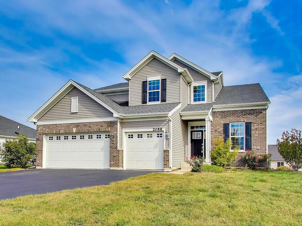 Welcome to Your dream home at 2058 Ingemunson Lane in Yorkville. This charming and like new residence built in 2020 boasts 4 spacious bedrooms and 2.5 bathrooms across 2,612 square feet of living space. Step into the captivating 2-story foyer with a stunning prairie style metal baluster railing staircase and feel right at home. The main floor offers an inviting open floor plan and high 9 ft ceilings perfect for entertaining. The kitchen features 42" white cabinets, all stainless steel appliances, center island, pantry and quartz countertops. The office/den on the first floor could also be your 5th bedroom or playroom. The 2nd floor offers 3 oversized secondary bedrooms, a large master suite with private bath including dual quartz comfort height vanity, linen closet and a huge walk-in closet. White doors and trim throughout. The expansive, unfinished walk-out basement comes with rough-in plumbing, ready for your personal touch. Outside, enjoy the huge yard and the convenience of a 3-car garage. Residents also have access to a clubhouse with a communal pool, tennis court, and exercise facility. In addition, this home is energy efficient and Wi-Fi certified! Welcome Home!