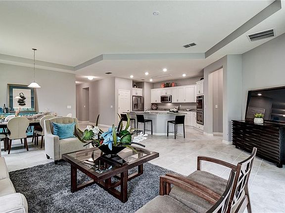 This inviting home, with its paver drive and pathways, is located right by a conservation area. Our most-popular floor plan offers a split bedroom layout for a private master retreat. The two secondary bedrooms are located towards the front of the home along with a den and laundry room for added convenience. The entry hallway opens to a huge great room with tray ceiling, a dining space and an upgraded kitchen. This area is filled with natural light and opens to a large covered patio that's perfect for indoor/outdoor entertaining. The chef-inspired gourmet kitchen includes 36-in. upper cabinets, a double oven, an eat-at island, and elegant stainless steel appliances (including a refrigerator). The peaceful master suite lies at the rear of the home and offers a huge walk-in closet and tray ceiling, while the master bath includes an executive-height vanity with dual sinks, and a walk-in shower and separate tub.