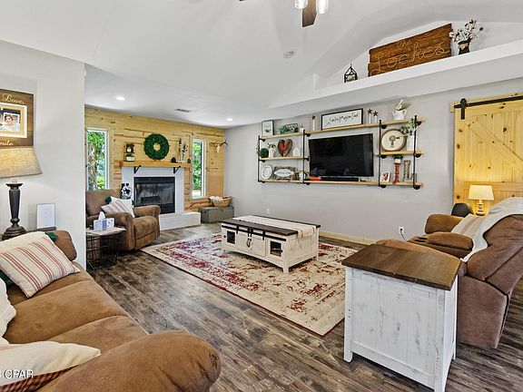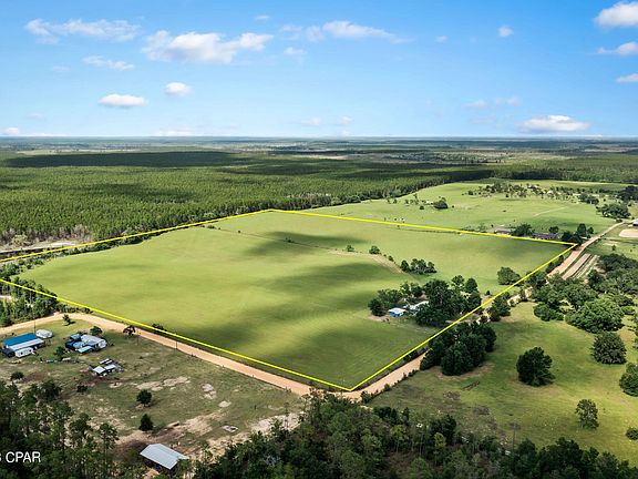 Enjoy breathtaking views of the countryside with this renovated farmhouse loaded with southern charm! Perfectly situated on 40+/- acres, this open concept 3 bedroom, 2 bath boast beautiful vinyl plank floors, a spacious living room with cathedral ceiling and wood burning fireplace, kitchen fit for a chef complete with custom cabinetry, quartz countertops, stainless steel appliances, farmhouse sink and massive walk-in pantry. The oversized master suite features a walk-in closet, his/her sinks and custom tiled shower. Outside you will find covered front and back porches, detached garage, luscious landscaping, wood shutters and a 24x48 pole barn. This rare find is located minutes from Hwy 77 and approximately 30 miles to Panama City.