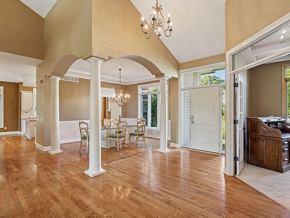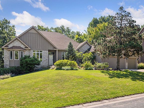 Stunning walk-out rambler on wooded pond lot in the heart of Eagan! This custom built rambler features extra tall ceiling heights throughout the home and oversized windows allowing for an abundance of natural light to fill the home. The kitchen has white enabled cabinets, granite countertops and stainless-steel appliances. Amazing hearth room adjacent to the kitchen with walk-out to deck and views of the pond! This layout is perfect for entertaining and enjoying time with friends and family. Cherry woodwork in the main level office with coffered ceilings adds the perfect custom touch. The main floor primary suite has a large bedroom, oversized windows looking out to the private backyard, and large on-suite bathroom! The finished lower level has 2 bedrooms, full bathroom, living room with a gas fireplace, and with over 1000sq ft of unfinished space for storage or future finishing this makes it the perfect area for a workshop or future exercise room. Come see this today before it is gone!