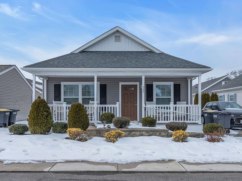 Welcome to Osprey Cove, a highly sought-after 55+ community in desirable Upper Township offering low-maintenance coastal living with a clubhouse, pool, fitness room, scenic walking paths, and beautifully maintained grounds — just minutes to the beaches of Sea Isle City, Strathmere, and Ocean City. + Known within the community as Unit 104 on quaint Seagull Ct, this Ocean City model has the most inviting Covered Porch that you'll be able to enjoy in all seasons. Enjoy this Peaceful interior Location within walking distance to the Clubhouse, Pool, and mailboxes. The home offers comfortable main-level living with an Open-Concept layout and a bright, airy feel. The living and dining areas flow seamlessly into the kitchen, which features modern appliances, generous cabinetry and a center island — ideal for everyday living or entertaining. + The spacious Primary Bedroom easily accommodates a king-size bed and includes a large closet and En-Suite Bath with walk-in shower and Dual Sinks. A second bedroom and full hall bath provide flexibility for guests or home office use. A dedicated laundry room offers additional storage and convenient access to the Patio. + A large unfinished walk up Second Level presents outstanding future potential — perfect for a home office, hobby room, guest space, or additional storage — allowing buyers to personalize and add value. + Enjoy carefree living with a monthly fee of $875 that includes landscaping, snow removal, sewer, trash, and access to all community amenities — with no separate real estate tax bill. Centrally located within the Seaville community and close to shopping, dining, golf, walking trails, and shore destinations, this home offers an excellent opportunity to enjoy active adult living in one of the area’s most desirable communities. Stop by Today and make Osprey Cove your home!