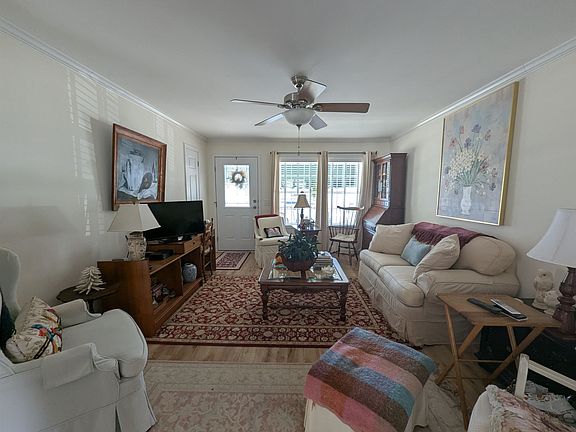 Fantastic "Avalon" model located in the highly desirable over 55 community of Osprey Cove. This home has been lovingly maintained. Enter thru your awning covered front porch into the open floor plan with living room, dining area and rear kitchen with granite counters, built in desk, white subway backsplash, SS appliances and island. Laundry room with upgraded washer & dryer and storage space. Home has a hall bath that has lots of natural light. Spare bedroom is perfect for guests or den. Primary home has ample closet space, and full-size bath with step in shower. Both primary bath and bedroom have custom built shutters which stay. Venture upstairs to a fully finished blank canvas with mini split for heat and air and plenty of room for more guests sleeping area and/or craft room, den or whatever your imagination can dream up! This home has a patio and attached garage. Lot rent is $875., and this includes your lawn irrigation, trash, snow removal, sewer and use of pool and the rec center. Subject to seller finding suitable housing, seller is actively looking.