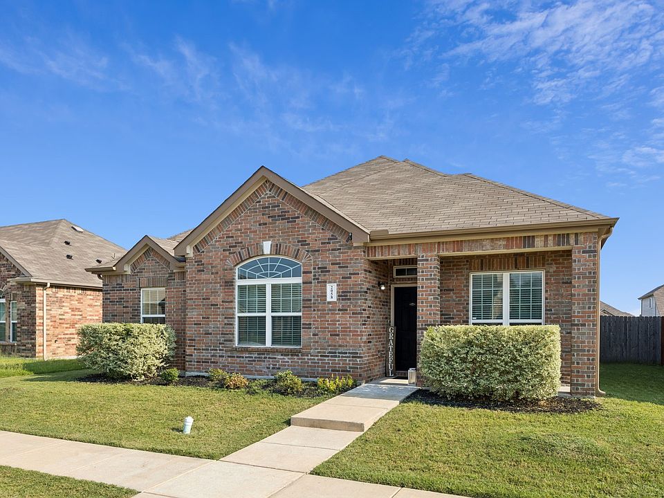 This beautiful one story property opens to a versatile formal living or dining space, perfect for entertaining or relaxing. The bright eat-in kitchen features stainless steel appliances, a spacious island, and granite countertops, ideal for everyday living and hosting that opens to the spacious living room. The ensuite primary bedroom offers a luxurious retreat with a walk-in shower, soaking tub, and dual sinks in the rear of the home. Enjoy outdoor living under the covered patio, and take advantage of the home's prime location—just minutes from all that the DFW area has to offer with no HOA. Welcome home!