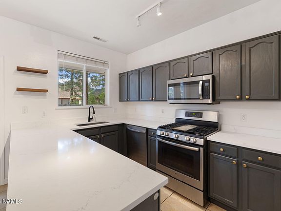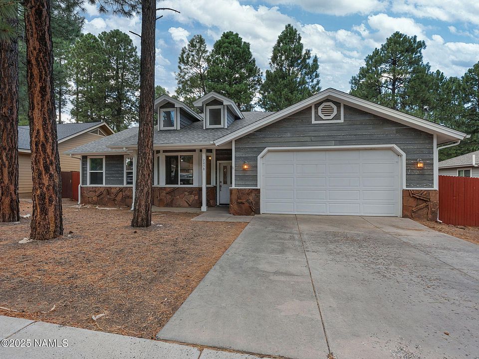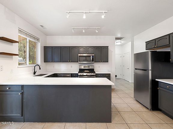 Just minutes from Northern Arizona University and situated in the highly desired Boulder Pointe neighborhood, this single-level 2002 home offers 3 bedrooms, 2 bathrooms, and a split floor plan. The 1,572 sq ft layout provides comfortable and functional living space with an oversized backyard ready for your design ideas. Additional features include central air conditioning, a rare find in Flagstaff, perfect for warm summer days. Recent updates include fresh interior paint, brand-new carpet, and sleek quartz countertops. Move-in ready and full of potential to make it your own.