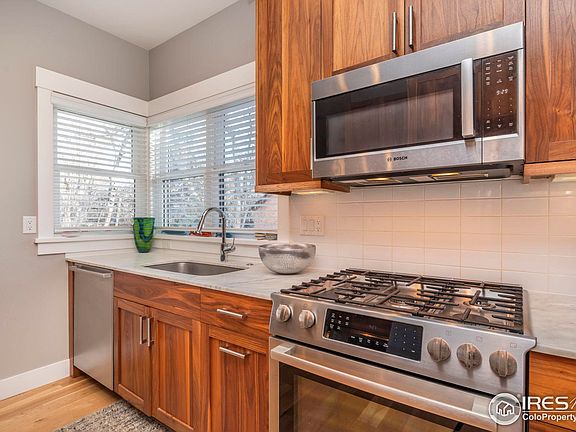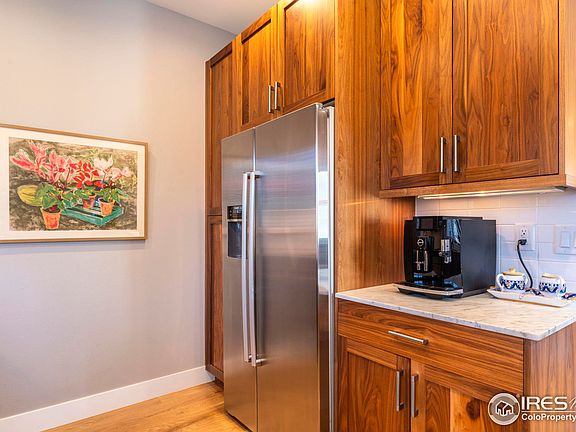 Only a block away from Boulder's downtown Pearl Street Mall, but tucked into a private enclave for quiet, seclusion and views. This is truly a special home. The luxurious primary suite is on the third floor and offers a five piece bath, walk-in closet and private balcony with foothills views. Two additional bedrooms on the second floor are separated by the shared full bathroom and linen closet for added privacy. Access to the generous rooftop deck is through the third bedroom. The main level is home to a lovely and warm kitchen with Bosch appliances, Carrara marble counters and HansGrohe fixtures. There is also an attached garage, outdoor garden space, and the relaxing presence of flowing water from the creek. With access to all of the amenities of Boulder and surrounded by tall trees, this home offers an incredible quality of life.