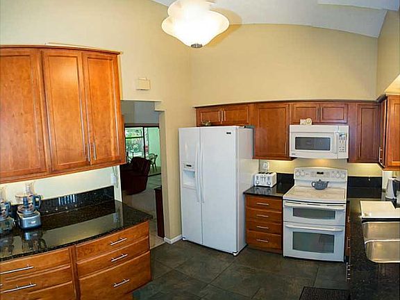 Open plan 3/2 with great flow inviting entry foyer>lg open vaulted lr-dr looks onto covered patio> leading to screened,roofed ,permitted 31x15 veranda.Updated windowed granite kit updated baths.Closets galore 1 walk in,1 linen+5 more.accord hurr shutter s,gar door and side door hurricane code., no hoa,sprinkler sys,new washer& dry,neutral tile ,roof 2006. great location off glades east of 441 nr Fl tpk Excellent shopping ,restauants, entertainment in immediate area.