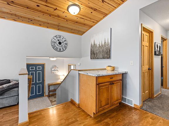 Just steps from Gull Lake! Enjoy the lake-life year round in this convenient location. Association access includes both Gull and Round Lake beaches, docks and park. This spacious home provides an open concept main living area with vaulted tongue and groove ceilings. The 4 season porch has large windows and lets in ample natural light. The large primary suite has an attached full bath and walk-in closet. A functional office/bedroom and 1/2 bath complete the upper level. Heading downstairs you will find an expansive family room with 3 additional bedrooms and full bathroom. The property is just over 1/2 acre and has plenty of room to store the toys and spread out. You will find a firepit area, concrete back patio with swimming pool pad, storage shed and a fenced-in raised garden bed area. Full roof replacement happing early March.