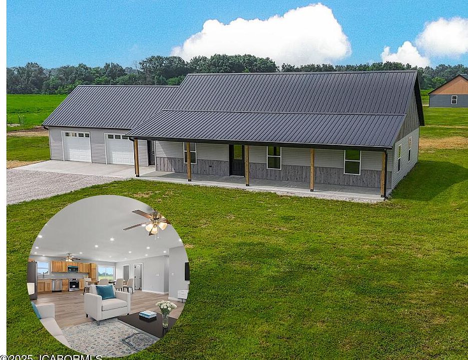 This brand new 3 bedroom, 2 bathroom home is ready to impress! Come on country living! Sitting on 5± flat acres, the possibilities are endless! Build a shop, add a barn, bring the animals, or just enjoy the space! Inside, you'll love the open layout connecting the living room, dining room and kitchen, creating the perfect flow for daily life or entertaining. The kitchen features custom cabinetry, granite countertops, and stainless steel appliances for a polished, modern look! The primary suite offers its own full bathroom and walk-in closet. The oversized attached garage (24x32) offers plenty of space for vehicles, hobbies, or extra storage! Whether you're starting a homestead, need space to roam, or just want a little peace and privacy, this home delivers!! Check it out!!