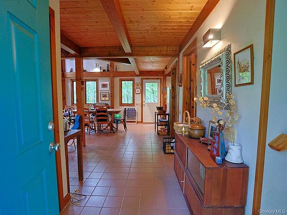 True post-and-beam retreat tucked away on 2.5 wooded acres with lake rights to a private, non-motorboat lake. This home blends rustic charm with open-concept living—exposed beams, soaring ceilings, and walls of windows that bring the outdoors in.