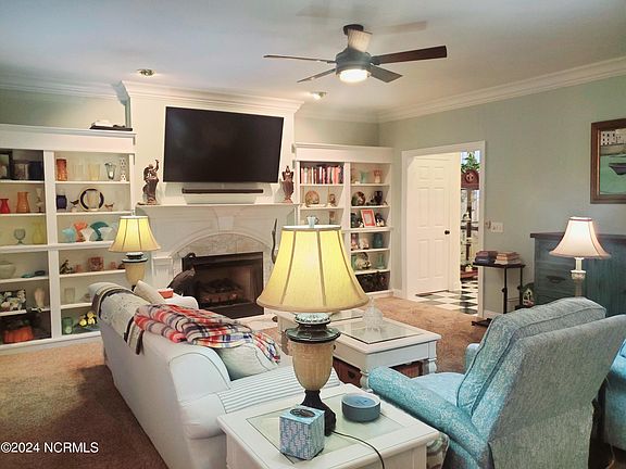Gorgeous brick home on Rivershore Road in Elizabeth City. Stunning foyer with marble leads you to a formal living/dining room with hardwood floors, den with gas log fireplace and built-in bookshelves, sunroom that is heated and cooled with vaulted ceilings, total kitchen remodel in 2022 with new flooring, cabinets, quartz countertops; half bath and laundry room. Upstairs are 4 bedroom and exercise room/den, master has trayed ceilings and gas log fireplace and remodeled bath. New high efficiently heat pump upstairs and new mini split in frog. Tankless hotwater, Generac whole house generator and so much more. 2 car attached garage and drive through portico.
