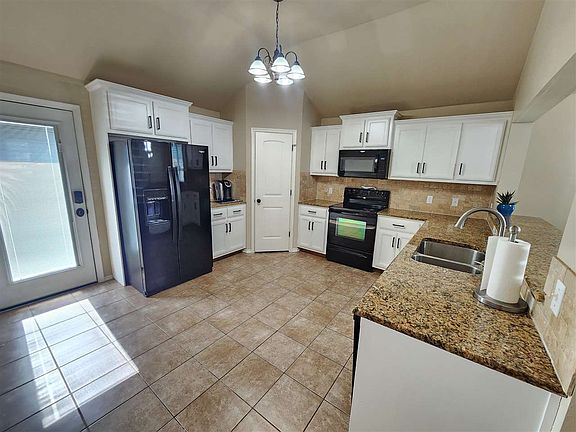 Come see this beautiful 3 bed, 2 bath, 2 car garage newer energy efficient home that has solar panels. This home has an inviting open floor plan with soaring ceilings. The kitchen features black appliances, lots of custom cabinetry, granite countertops, travertine backsplash, large breakfast bar, and a pantry for extra storage. The primary bedroom is oversized that will fit even larger furniture and the ensuite offers double sinks and a large walk-in closet. This home is located in the award winning Bishop school district which is the top rated school district for Lawton getting a 10 out of 10 score on greatschools.org. The roof was replaced just 1 year ago. This home comes with solar panels that are financed. The balance owed on them is $24,800 which is in addition to the price of the home. The solar panel loan will need to be paid off at closing or assumed by the new buyers. It’s at an interest rate of 1.99% and the monthly payment is $111.93. These solar panels will reduce your energy costs throughout the year. Come see today!