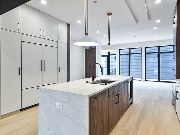 Construction is complete and this one is a real stunner! Final home to hit the market in our most recent development, The Race Collection. Contemporary facade with clean lines and brick accents. Extra wide floor plan with high end fixtures and finishes. Modern, sun filled spaces with oversized windows. Open concept main-level perfect for entertaining. Combined living/dining area features direct vent gas fireplace with floor to ceiling surround. Chef quality kitchen includes top of the line Sub-Zero and Wolf appliances, custom cabinetry with quartz countertops, and large island with bar seating. Expansive family room with second gas fireplace and a wall of back windows. Upper level primary suite with two WIC's and ensuite bath featuring a freestanding tub, frameless glass shower, dual sinks, and heated flooring. Two additional bedrooms, full bath with tub and dual sinks, and laundry with LG washer/dryer complete the level. Third floor wet bar opens to a roof deck with outdoor fireplace. Finished lower level features radiant heated flooring and includes a spacious recreation room complete with wet bar, fourth bedroom with large WIC, full bath with shower, utilities, and luxury vinyl plank flooring. Rear deck with staircase to garage roof deck with pergola. Prime West Town location close to restaurants, shopping, entertainment, and Smith Park! Easy access to public transportation and other great neighborhoods.