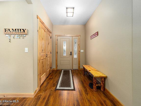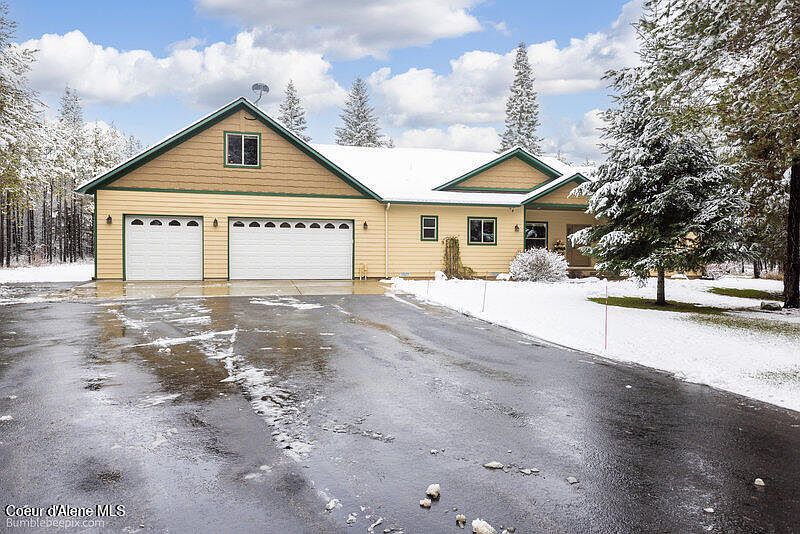 Nestled in the woods of North Idaho, this custom home offers 3 spacious bedrooms, 2.5 bathrooms & 3,193 sq ft. The heart of the home is the expansive kitchen, complete with granite countertops, a large island & pantry, the living room includes a gas fireplace & stunning knotty alder trim throughout adds a rustic charm. The master suite is a sanctuary, featuring a vast walk-in closet and a luxurious walk-in shower. Upstairs, discover a 578 sq ft bonus room with dual-zoned heating and A/C, offering endless possibilities. Set on 4.77 acres of lush, wooded land & beautifully landscaped grounds, it includes a firepit, sprinkler system & large covered patio. Attached 3-car garage for your vehicles & the 48x48 heated shop with a loft is a standout feature, complete with RV sewer hookups and two 14' doors—ideal for parking boats, RVs, or other big toys. Located in a peaceful neighborhood with access to the outdoors and just a short drive from all the best that North Idaho has to offer.