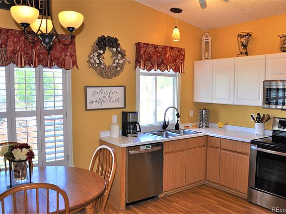 Welcome home to this spotless beauty sitting on a quiet street in a great neighborhood. EZ walk to parks, trails, community swimming pool/tennis/soccer/basketball/volleyball and Iron Horse Elementary School w/ baseball fields. EZ walk or bicycle to Historic Downtown Mainstreet with it's renowned entertainment venues featuring live music, outstanding restaurants, coffee shops, library, shopping, and so much more. Easy commute to DIA, Castle Rock, DTC, Denver, Park Meadows, Hospitals all via close access to E470, I25, and Parker Road. The owners have taken great pride in their remodeling and maintenance on this 3BR + 2.5 bath where they have raised their own family. Bathrooms have been remodeled, newer paint inside and out, newer laminate flooring, Plantation Shutters, and more. The kitchen features vaulted ceiling, all new upper kitchen cabinets, attractive laminate flooring, pantry, and all newer stainless kitchen appliances remain. Primary bedroom feature vaulted ceiling, niche for fashionable displays, two closets and en suite bathroom. The basement is unfinished with garden level windows with great sunlight and just waiting for your own extra bedrooms, theater, office,.. The large rear yard is fully fenced, sprinklered, and features a large, smooth finished cement patio. Beautiful paved trails for bicycling, dog walking, jogging or to just sit and relax amongst the trees with ponds and an abundance of wildlife. Come visit this affordable and comfortable home and begin your own lifestyle in beautiful, safe Parker, Colorado.
