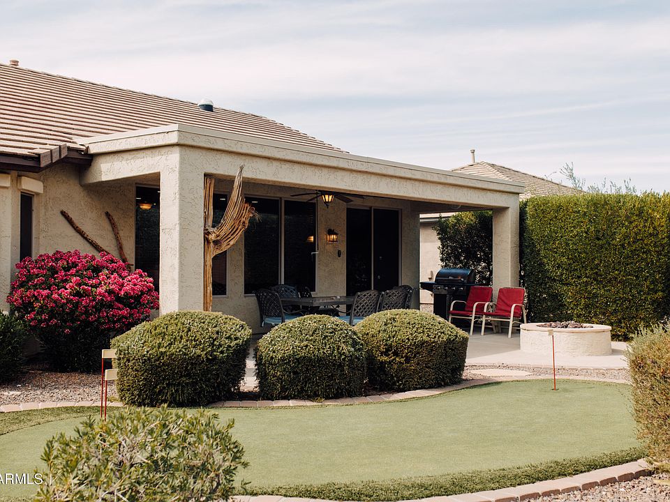 Welcome to this charming, remodeled Gala model. Loaded with upgrades and fully furnished! A must see! Features Include: Front entry courtyard, Breeze Door, diagonal set floor tiles w/decorative inlay at Foyer, Granite counters, Cherry cabinets w/pulls & handles, 5 burner gas stove, SS appliances, R/O water system, solar tube in kitchen, bay window in master BR, and LARGE walk-in closet. And in the 2.5 car Garage: Water Softener, storage cabinets, & utility sink. The back yard is designed for privacy...a wall across the back, hedge bushes along the sides. An artificial turf putting green & a gas fire pit for your enjoyment. A list of upgrades available upon request.
