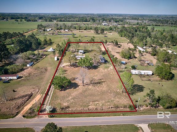 Great location to build a home or Mobile home. The property has a Mobile Home and a small building converted into a small home sold with property at NO VALUE. Property includes two power meters, Well, Septic Sewage and RV Hook-up. 3 Acre Parcel SOLD AS IS. -Mobile Home - 1 Bedroom/2 bathroom - could be 2 bedroom.- Chain Link Fence behind MH does not convey. Small Home - 1 Bedroom Tenants currently occupying property. Please do not go to property without an appointment and your REALTOR® -- 11 miles from I-10 and 19 miles to Gulf Shores. All information deemed accurate, but not guaranteed. Buyer to verify all measurements and any other listing information that they deem important to the buyer's satisfaction during inspection contingency period.