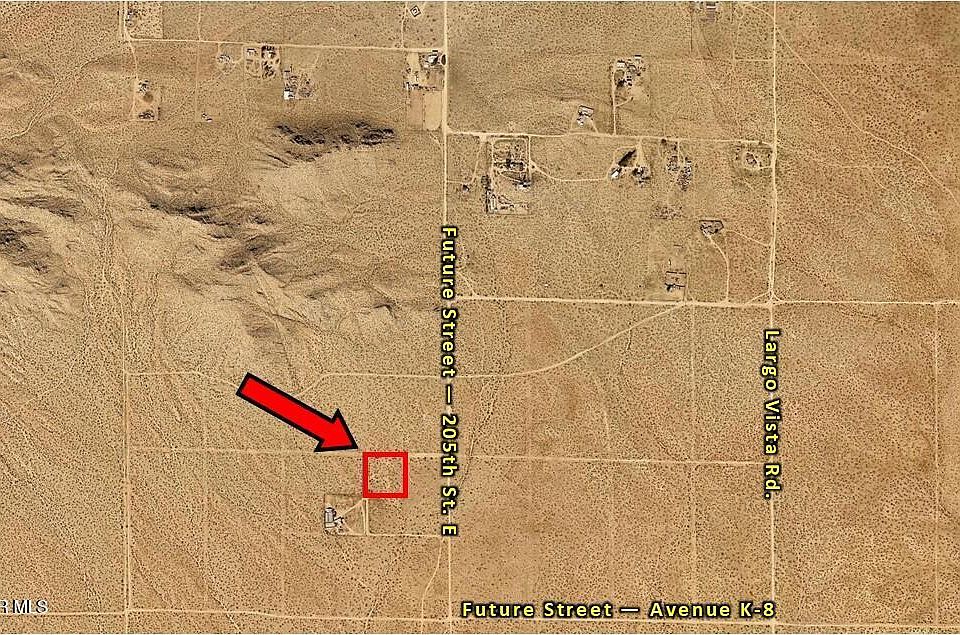 Excellent investment opportunity to buy and hold! Located in the Hi Vista area, this 2.58+/- acre parcel offers wrap around views of the High Desert. Scattered home/ranches are to the north including one near the property. Property is also near Saddleback Butte State Park. Dirt trails and future unpaved streets are within close proximity to the property being 205th St. E, Avenue K-8 and Largo Vista Rd. Property might have legal access (buyer to verify).