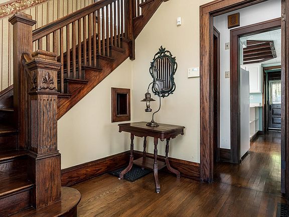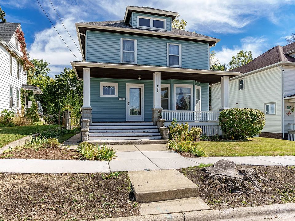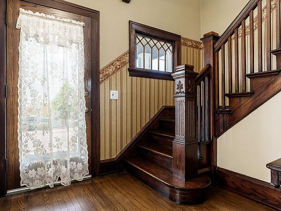 Welcome to the timeless charm of this classic 1906 home. Original woodwork, hardwood floors, stunning staircase, and high ceilings all add to the inviting atmosphere of this home. The large front porch is ideal for relaxing and enjoying the sunsets. The foyer is spacious and flows into the updated all white kitchen and the living room. The light and bright living room offers a generous sized room in which to entertain. The formal dining room is also very large and is separated from the kitchen by the original swinging solid wood door. Off the kitchen the former pantry is now a full bath with walk-in shower. The second level offers 3 spacious bedrooms, all with walk-in closets with lights and a full bath. The bath has a clawfoot tub and has been fitted for a shower. The stool and sink are newer. There is also a walk-up attic which is ideal for storage or possible future expansion. The rear yard is fenced and driving access to the garage is from the alley. The rear deck is partially covered and looks over the rear fenced yard. The detached garage is driving accessible from the alley. This home is being sold "as-is" to settle an estate.