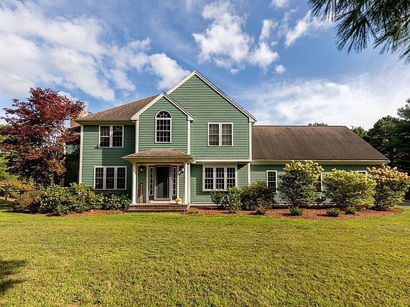 Nestled over 8 acres of serene landscape, this 4 bedroom Colonial offers a blend of comfort and style. The thoughtful design ensures plenty of space for relaxation and entertainment inside and out. Step inside to discover a warm and inviting atmosphere, highlighted by hardwood and tile floors. The gourmet kitchen is a chefs' dream with granite countertops, spacious island, wall oven & stainless steel appliances. Enjoy cozy evenings by the fireplace in the living room or host lavish dinners in the formal dining area. The master suite is a private oasis featuring cathedral ceiling, ensuite bath w/soaking tub & separate shower. Need a quiet place to work? The home office is perfect for remote professionals. Entertainment is never scarce in the second floor family room. The pool house, complete with kitchenette, half bath, eating area and outdoor shower is perfect for Summer fun. Owned solar panels deliver tremendous savings plus a whole house generator, deck awning, waterfall & more. Wow!