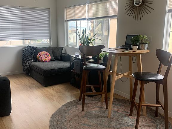 furnished with a rolling cabinet/countertop "island" that can be removed if tenant desires space instead