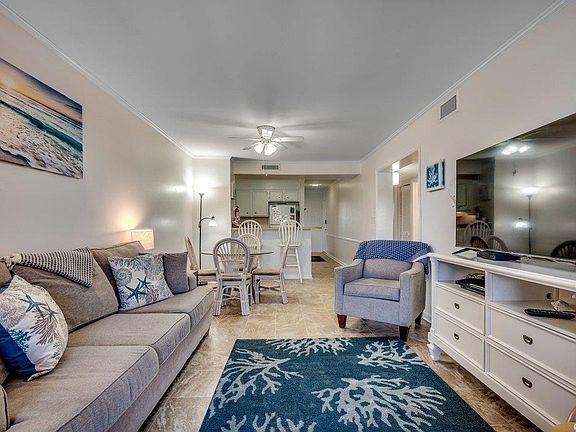 Talk about Location! Across the street from the Beach and 2 blocks to Main Street. This amazing condo is just right for a first time investor with great rental income, or the perfect vacation home. Take a walk or Golf Cart ride to everything that the beach has to offer. This fully furnished 3 bed 2 1/2 can easily sleep up to 3 families and has a full size washer and dryer for your convenience. Two pools, Hot tub and Tennis courts for your enjoyment are right outside your door! Take a look today and see what you're missing at the beach.