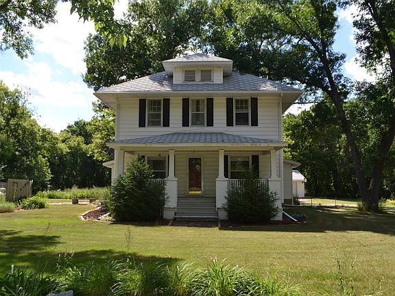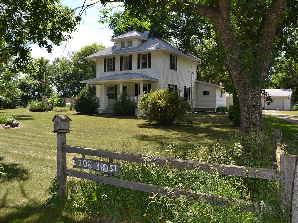 Shaded Estate With Large Front Porch in North Dakota! Enjoy the quiet life in this classic two story four square farm house! Located in Burleigh County. Large, open air front porch will welcome you home to your own 2.75 acre private, shaded estate. The open kitchen allows for many hands to help prepare meals and opens into a formal dining space and living area. The master bedroom boasts glass doors which open onto a private deck, while the upstairs features three large bedrooms with closets and a 3/4 bath. The large lot is almost fully shaded with plenty of room for gardening, landscaping and other outdoor activites. Newer two car garage features additional workshop space and there is another large storage shed to store the included John Deere riding lawn mower! You'll love this century old home from the moment you pull into the drive. All information is reliable, but not guaranteed. Buyers should exercise due diligence in buying any real estate.