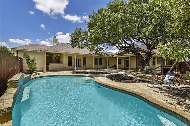 Exceptional custom built white stone home in Fountainwood. This one has it all: gourmet kitchen, tile floors, media room, pool w/waterfall, and outdoor kitchen for great entertaining! Separate 800 sf nanny or guest quarters.