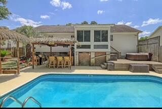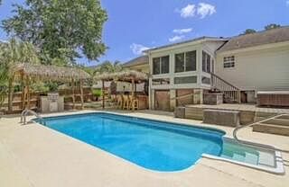Welcome home to 206 Amberjack Way! This charming ranch-style home, nestled on just under a quarter of an acre lot, features 3 bedrooms, 2 bathrooms, and an in-ground swimming pool! Centrally located in the well established and desirable Marlin Estates subdivision with NO HOA fees! This home showcases gleaming wood flooring and grand vaulted ceilings! The kitchen was thoughtfully updated with smooth quartz countertops, beautiful wooden cabinetry, and stainless steel appliances! The master bedroom is conveniently located on the main level and comes complete with a ceiling fan, walk-in closet and ensuite bathroom! The two additional bedrooms are both generous in size and share a full bathroom. There is a bonus space over the garage that is perfect for a home office, or media room, or...the potential uses are endless! The sunroom, located at the rear of the home, is the perfect spot to take in your morning coffee or read a great book while gazing out onto your backyard tropical oasis! The backyard is what living in the Lowcountry is all about, featuring an in-ground swimming pool, brand new fully fenced and private yard, tiki huts covering your grill and bar area, your own personal putting green and so much more! The entire home has a full emergency Generac generator! The solar panels have been paid off! This is such a wonderful property and will not be available for long in this market! Schedule your showing today! If square footage is important - please measure!
