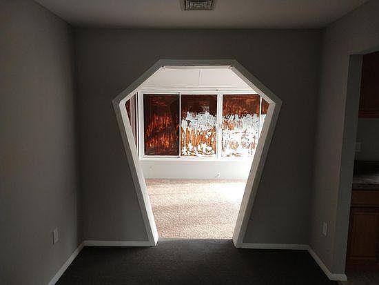 Quaint house with driveway, large living room dining room, three bedrooms, inside sunroom/inside porch, nice kitchen, and huge backyard.