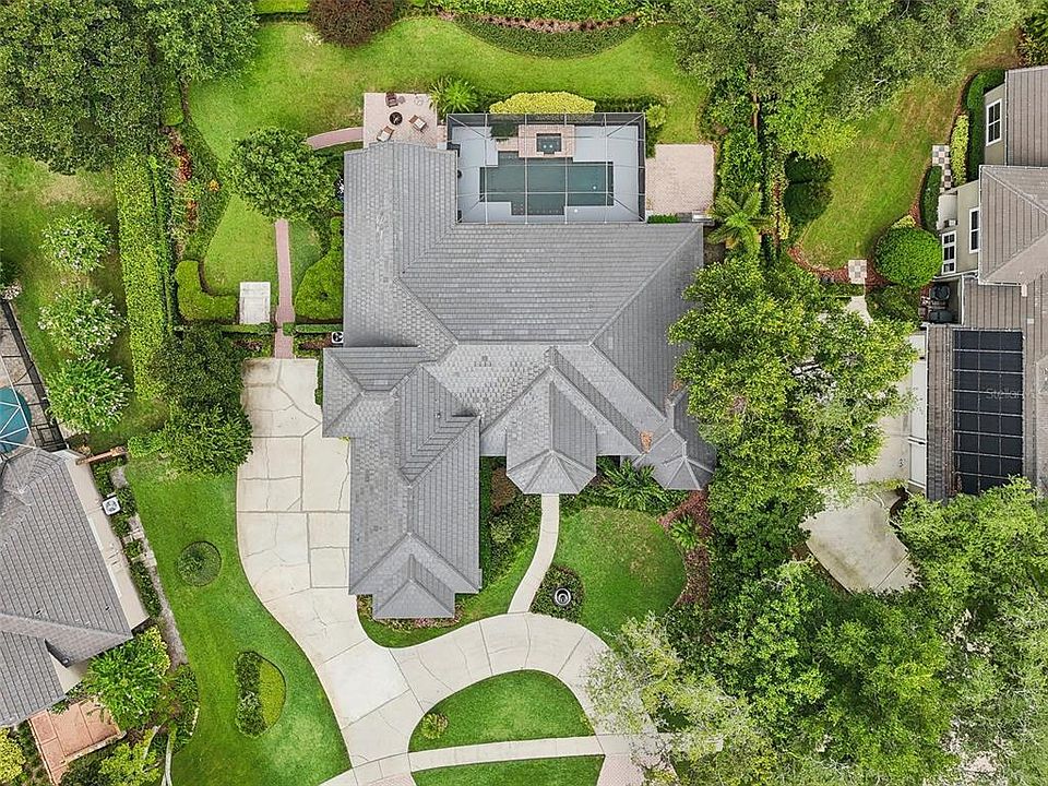 One or more photo(s) has been virtually staged. Welcome to your dream home in the exclusive gated community of Arrowhead at Tuscawilla in Winter Springs. This stunning custom pool home sits on a generous 1/2 acre lot and boasts a circular and extended driveway leading to a 3-car side entry garage. Freshly painted exterior (2021), elegant stone front accents and extensive outdoor LED landscape lighting sets the tone for the luxury within. As you step through the beautiful double entry doors, you are greeted by over 4,000 sq. ft. of exquisite living space. This home offers 5 bedrooms, 4 full bathrooms, a separate office, and a bonus room. The open floor plan features vaulted ceilings with multiple decorative tray ceilings and hardwood floors, with new laminate flooring in the secondary bedrooms. The neutral interior paint palette creates a warm and inviting atmosphere. The formal dining and living rooms overlook a gorgeous screened pool and covered paved lanai, perfect for entertaining. The nearby office, with double doors and built-in shelving, can easily be converted into a sixth bedroom, accompanied by a conveniently located full bathroom. The heart of the home is the eat-in kitchen, complete with custom cabinets, granite counters, stainless steel appliances, a double oven, a prep island, bar seating, and a walk-in pantry. The kitchen opens to the family room, which boasts high ceilings, a beautiful custom fireplace, built-in storage, and sliding doors that lead to the screened pool area. The split floor plan ensures privacy for the primary suite, located on the first floor. French doors open to the pool area, and the suite includes a spacious sitting area, dual closets, and an en suite bathroom with dual vanities, a walk-in shower, a garden tub, and a water closet. Two secondary bedrooms on the opposite side of the home share a Jack-and-Jill bathroom. Upstairs, a private suite awaits, perfect for guests, in-laws, or a live-at-home scholar. This suite includes a large bedroom with a walk-out balcony, a bonus/family room with a wet bar, a full bathroom, and a second bedroom featuring a Murphy bed and built-in office space. The backyard is an oasis of tranquility with a screened-in pool and lanai, two open-air patios, and a fully fenced yard with brick privacy wall. Professionally landscaped and designed by a landscape architect in 2018, the outdoor space is as stunning as the interior. Additional features include a new tile roof (2021), three zoned A/C units (2021), pool deck resurfaced (2024), deep well with air pressure tank, outdoor LED lighting and custom plantation shutters.The home's prime location offers a short stroll or golf cart ride to restaurants, a country club, and two parks. It is zoned for top-rated Seminole County public schools, with multiple private schools nearby, and offers easy access to 417. This luxury home in Arrowhead at Tuscawilla is more than just a residence; it's a lifestyle. Don't miss your chance to own this exquisite property.