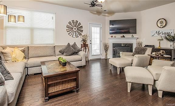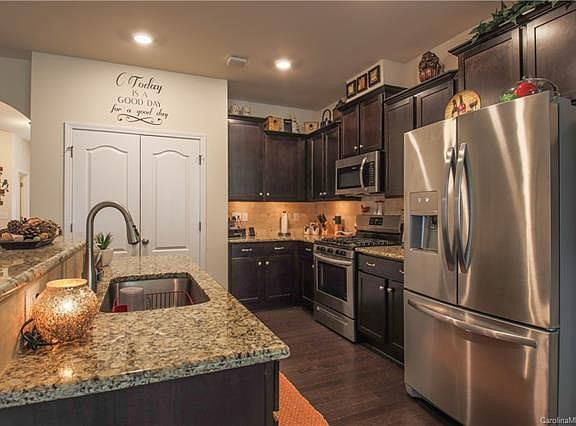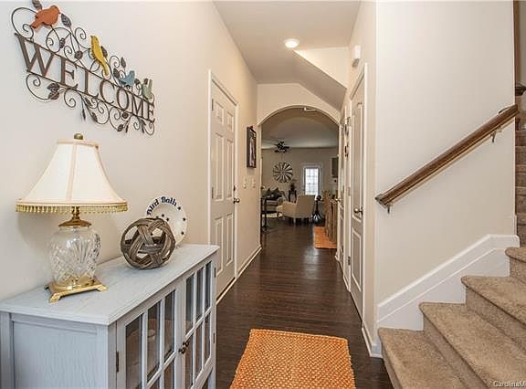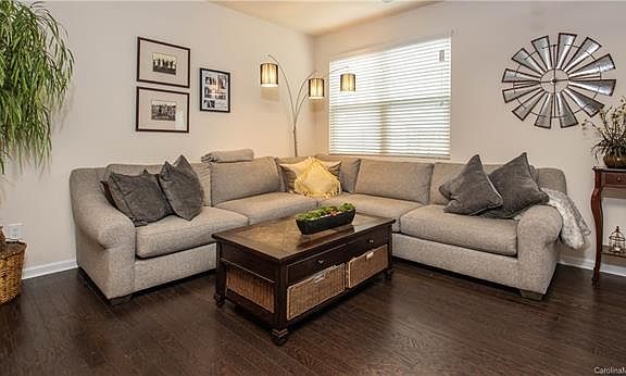 Welcome home to this popular Carlton floorplan in one of the sought after neighborhoods in the Fort Mill area. Enjoy your morning coffee on the patio of this Waterside at The Catawba townhome backing to a private wooded area featuring warm neutral colors in the staggered Espresso cabinets and pre-finished hardwoods on the main floor along with warmer toned granite kitchen countertops. The auxiliary bedrooms are roomy and overlook the back patio. The oversized guest bath features double vanities and sits across from the conveniently located laundry room on the second floor giving way to easy access from all bedrooms. The large master bedroom features a tray ceiling with ceiling fan and large walk-in closet. The community itself features walking paths throughout and canoe launch at the Catawba River.