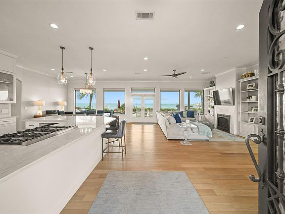 You are invited to view this exceptional Home located on Galveston Bay! Enjoy Waterfront Living at it's finest, Featuring this Beautiful & recently Updated Home with Recent flooring, Windows, Lifetime Metal Roof, Re-Designed Kitchen with Quartz Countertops, Italian Gas Range, New Fixtures, Electric Shades, Remodeled Primary Bedroom & Bath & Guest Suite, Luxurious Resort Style Pool & Spa, Outdoor Shower/Bath, Private Gym (with AC & Heat) Updated Outdoor Kitchen, Mosquito System, Outdoor Speakers, Extended Private Pier, Extensive Outdoor Coastal Living & a spacious 5,000 sq ft Building located across the street that is perfect for Private Functions, Family Fun and Hosting Holiday Dinners. It includes a Kitchen with a Gas Range, Fridge, 3 Beverage refrigerators, HUGE Bar, Full Bath, 50Ton AC & Heat! Call us TODAY to schedule a private showing of this Coastal Beauty and the AMAZING Building Across the street, then try one of the Many eateries near by, Pier 6, Topwater, Gilhooley's & MORE!