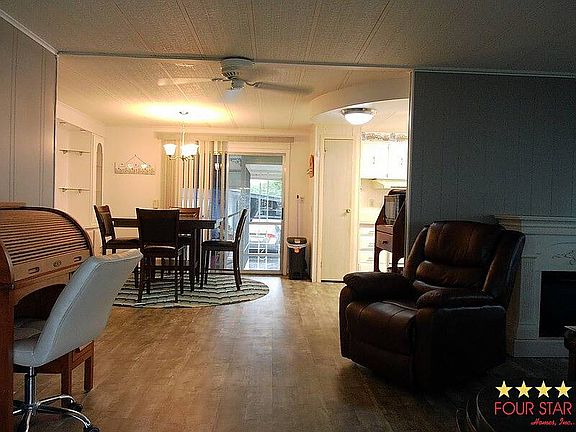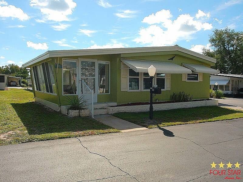This inviting two-bedroom, 2-bathroom home is located in a desirable over 55 community. It offers a spacious and comfortable living space with thoughtful details throughout. The large living room provides ample space for relaxation and even includes and area that could be used as a small office. A television is already in place, making it a cozy spot for entertainment. The living room flows seamlessly into the kitchen, which is both functional and stylish. It has plenty of room for a large table and chairs, as well as a built-in cabinet along one wall for extra storage. With abundant cabinets, generous counter space, a food pantry, and modern appliances, the kitchen is well-equipped for daily needs. As you move down the hall, three storage closets offer additional space for organization. The guest bedroom is generously sized, comfortably fitting a queen-size bed, dresser, and chairs. A walk-in closet provides even more storage. Across the hall, the guest bedroom features double-sinks, a tub, and a shower, making it convenient for visitors. The main bedroom is impressively spacious, accommodating king-size bed, dresser, and even a sitting area. Two large walk-in closets prove exceptional storage. The main bathroom offers ample counter space, cabinets, and a step-in shower for ease of use. A highlight of the home is the bright and airy Florida room, which includes a small couch and a daybed. It provides both an entrance and an exit to the outside, adding to the homes charm. The large screened room features double doors, making it perfect for parking a golf cart. This area also connects to the storage and washroom, which includes a washer and dryer and an additional exit leading to the backyard. The entire home has durable vinyl flooring, making maintenance simple. Situated on a corner lot, this home offers enhanced privacy. Important updates include a new electrical panel installed in 2022, a screened room replacement in 2022, a resealed roof in 2023, and a hot water heater replacement in 2019. The home has a total of 1152 square feet, with an additional 120 square feet in the Florida room, which includes a wall air unit to extend the living space. This home is in a prime location, close to shopping, restaurants, and area attractions. With its spacious layout and convenient features, it is a must see at this price! Submit an acceptable offer and the owner will cover your first TWO MONTHS of lot rent!