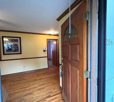 Neat starter or investment property with opportunity to build equity. Hardwood floors ''with some overlays,'' replacement windows, roof approx. 5 years old, crown and chairrail moldings in living/hall. Large back deck with vinyl railings (12'x20'), storage building (12'x12'), partially fenced backyard. Easy to show. Property being sold 'as is-where is'.