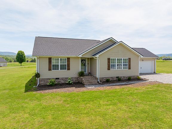 One level updated 3 bedroom, 2 bath home with a double garage, beautifully positioned on a level acre lot with scenic views of neighboring farm land and the mountains. The sellers have made many recent improvements, including a new HVAC and interior paint, and appliances (2022), new roof (2023), new garage door (2024), new landscaping and more! The home boasts a great flow with a spacious great room that has a vaulted ceiling and opens to the dining area and foyer. The kitchen has tile flooring, stainless appliances, white cabinetry, subway tile backsplash and access to the rear deck, 440 +/- sf garage and the laundry room. The primary bedroom has a walk-in closet and private bath, while the two guest bedrooms share the use of the full hall bath. Head outside where you will find plenty of open space for outdoor fun or simply taking in the beautiful pastoral setting. The home is situated on a dead-end street and is perfect for walking, running, and biking. Simply a fantastic opportunity for the buyer seeking a slower place but still within 40 +/- minutes of downtown Chattanooga, so please call for more information and to schedule your private showing today. Information is deemed reliable but not guaranteed. Buyer to verify any and all information they deem important.
