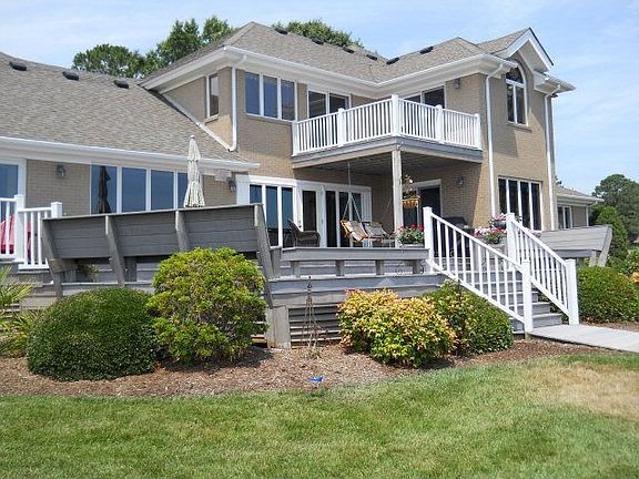 Stunning Riverfront Brick home! Features a living room and dining room, family room with a beautiful fireplace built-ins on each side and a wet bar all with expansive river views. sunroom, kitchen with cherry cabinets and a breakfast room, loads of built-ins in the cabinets, two bedrooms down and two upstairs suites. The master bedroom has two walk-in closets, a sitting area and built-on bookcase cabinet and a sumptuous master bath with a huge jetted tub and walk-in tiled shower. Entry to the upstairs deck from the master bath and master bedroom. Sweeping river views!