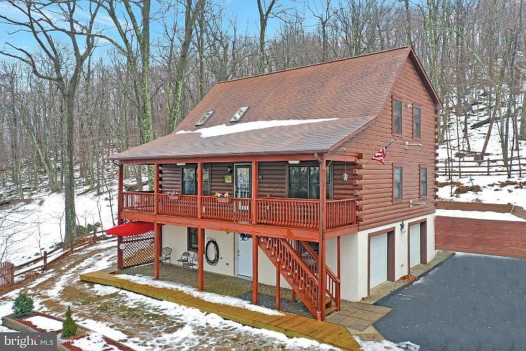 If you are looking for a cozy retreat away from the crowds, come check out this beautiful log home located in the gated community of High Knob! High knob is known for it's breath taking views of the valley all year around! With 2.6 acres nestled in the mountains you are still only minutes off I66 for an easy commute. This rustic home offers a spacious feel with soaring cathedral ceiling, skylights and a beautiful stone fireplace. The 2nd level also features a kitchen dining combo, a full bathroom, and 2 bedrooms. The primary bedroom with full bath is privately located on the 3rd floor along with an open loft area perfect for an office additional living room. Both the primary and 2nd bedroom have a pellet stove perfect to cuddle up next to during the winter months. Right off of the ground level entrance you'll find the 4th bedroom with a full bath. You'll love watching all the wildlife that passes through right from your front porch! Enjoy your summers at the community pool along with many other amenities High Knob has to offer. Other features and updates include HVAC (2021), shed (2020), paved asphalt (2021), exterior doors (2020), and appliances (2021). "HOA fees" of $684 are collected through the homeowners' county taxes as Sanitary District fees with the County of Warren, the county bills half of the taxes in June and the other half in December.