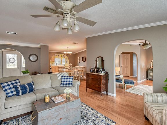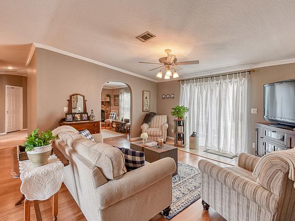 Spacious Pool home! This is a delightfully charming home on 1.67+/- acres. Featuring 3 bedrooms and 2 baths, a large living room with great natural light, family room/den with a beautiful corner fireplace, and formal dining area. The huge kitchen has a large center island with sink, lots of counter and cabinet space, and a bright breakfast area. Master suite has large walk-in closet and the en suite bath has double sinks and a relaxing garden tub. Vaulted ceilings and crown molding throughout. Outside features a welcoming front deck, a sunny screened porch, large concrete parking area, and a detached storage building and carport . The rear patio is sure to be a splash with a refreshing pool and patio area great for entertaining. Home is very spacious and well maintained.