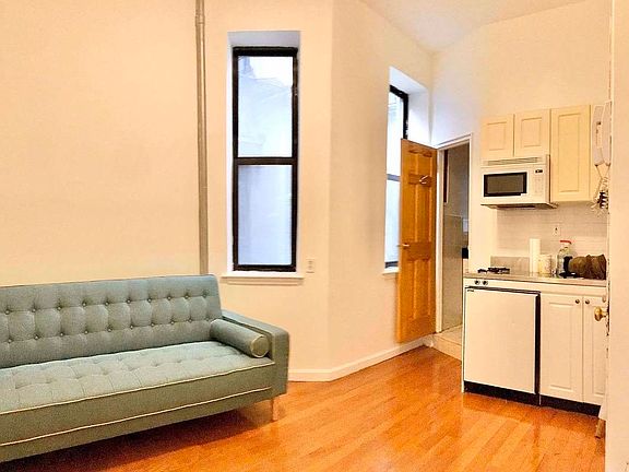 *No Fee* & *Rent Stabilized unit* Private Open house every day by appointment only. This unit has great natural lighting with large windows and it faces the quiet backyard with greenery. Bedroom fits up to Queen size bed with a built-in closet and cozy living room with clean kitchen appliances. Please contact by text or email for details of this apartment. The applications are accepted on a first come first served basis. Easy approval, out of state guarantors accepted.