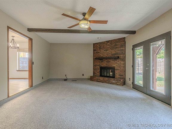 Welcome home to this inviting Owasso charmer, beautifully updated with a brand-new roof, gutters, carpet, and exterior paint. Inside, you’ll find three spacious bedrooms with generous closets, two refreshed baths, and an oversized living room accented by a beamed ceiling and cozy wood-burning fireplace.
