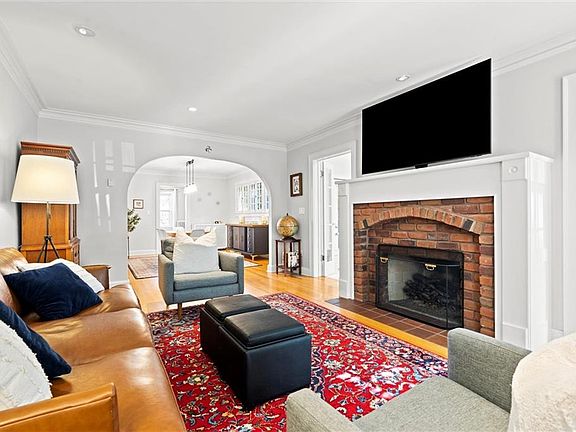 You’ll notice the quality fixtures, crown molding, and detailed trim throughout. The main level features a formal living room with fireplace, a flexible side room that works perfectly as an office, playroom, or reading nook, and a formal dining room that flows into a recently renovated white kitchen with newer appliances, bar seating, and plenty of cabinet space. Two generously sized bedrooms share a hall bath on this level.