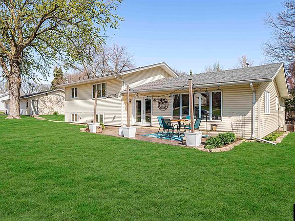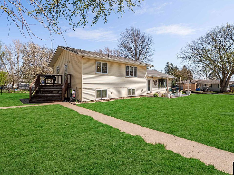 Wanting to see a home that checks every box? This beautifully updated five bedroom home sits on a spacious corner lot in Schaller. This is one of the only homes in town with a four-stall garage, giving you unmatched space for vehicles, hobbies, or storage. Step inside to a modern eat-in kitchen with a large center island, perfect for casual dining or entertaining. The open-concept living room offers plenty of space for gatherings, while sliding doors lead to a brand-new stamped concrete patio (2023) for outdoor enjoyment. The main level features a bright guest bedroom and a newly remodeled full bath, ideal for visitors or multi-generational living. Down the hall, a 2016 addition expands the layout with two spacious bedrooms and a private master suite complete with its own bath and walk-in closet. Downstairs, the finished basement includes a large family room with endless possibilities, plus a fifth bedroom with new flooring (2021). The unfinished portion offers excellent potential for a workshop, home gym, or future expansion. With generous living spaces, extensive storage, and thoughtful updates throughout, this home is truly move-in ready and offers comfort, functionality, and style in one remarkable package.