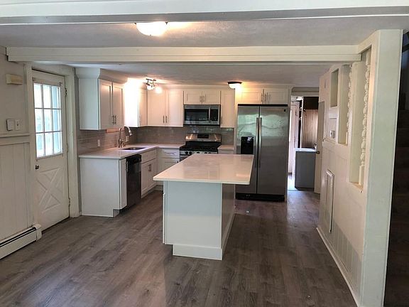 Cute Cape located near Lake Massapoag. 3 beds/1bath. Huge kitchen with quartz countertops, stainless steel appliances, and large center island. Large great room off kitchen with closet. Large backyard. Updated bathroom. House has been recently vinyl sided and has all new windows. Less than the price of the rental of an apartment!! Great location for walkers/joggers as it is near the lake. Rare opportunity to find a single family house at this price. Minimum 1 year. No pets unless approved by lessor (small dog May be possible), Credit app and First, Last & Security required by certified funds. Available August 1. Call for a showing today!!